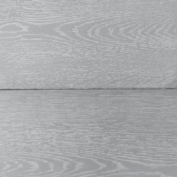 На эскизе: Брашировка (от английского слова brush «Щётка», «вычесанные» мягкие волокна древесины глубиной 0,3-2 мм для снятия напряжения, создания эффекта состаривания и визуального выделения патины) средней глубины (до 1 мм). Основной оттенок серо-белый. Густой пигмент дымкой дающий белый оттенок поверхности. Патина слегка выделена более белым оттенком. Степень Gloss (глянец) 15% - матовый.